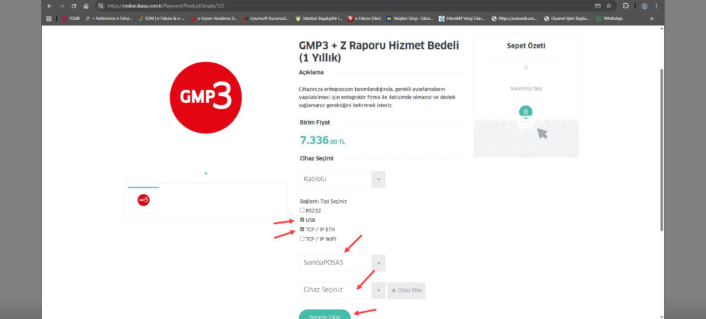 – GMP3 Hizmet Bedeli (1 Yıllık) Seçerek SambaPOS seçiyoruz.