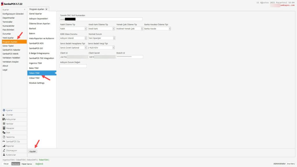 1. SambaPOS X30TR TSM Entegrasyon Lisansının Alınması