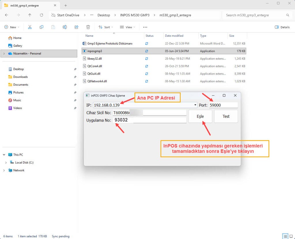 6.47.2. inPOS M530 GMP3 Cihaz Eşleştirmesi