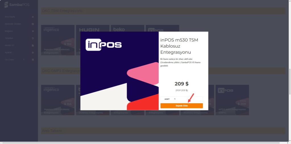 cp.sambapos.com kullanıcı kontrol panelinden inPOS GMP3 (Kablolu) Entegrasyonu Lisansı satın alınması gerekmektedir.