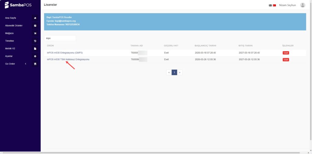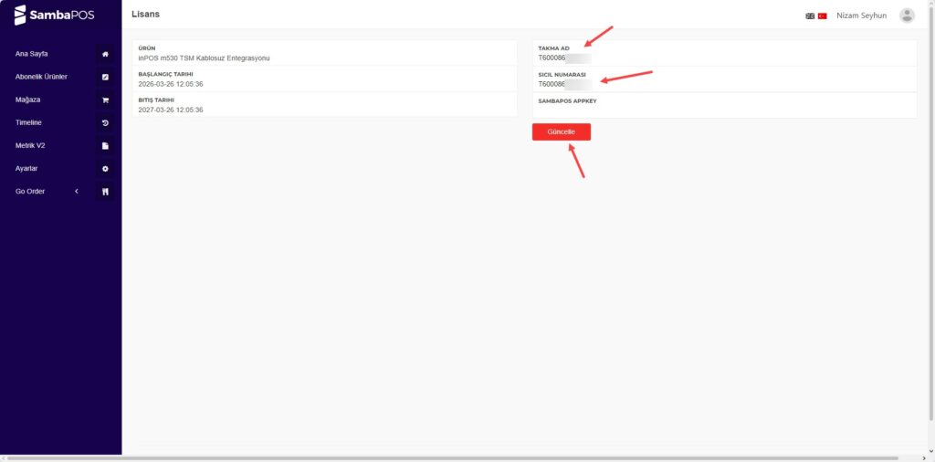 1. Cihaz Sicil No Bildirimi – Entegrasyon Lisansı Alımı ve SambaPOS Lisans Aktivasyonu