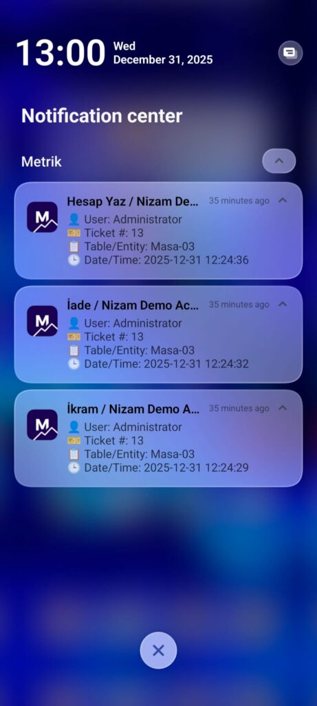 8.11.3. SambaPOS Metrik’de Anlık Bildirimler Nasıl Alınır?