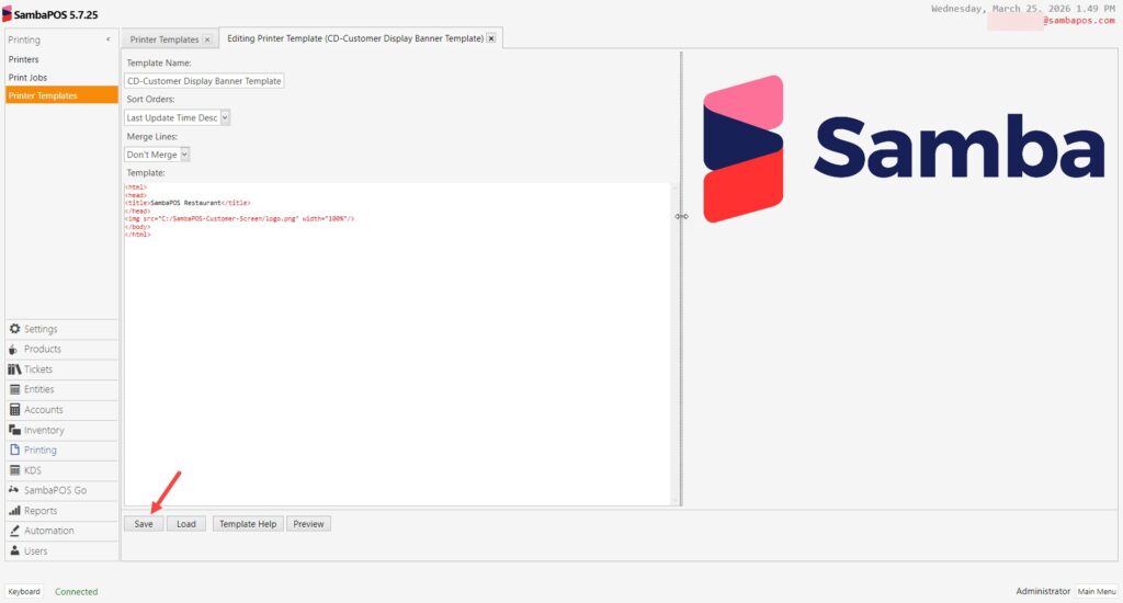 NOT-1: In order to use this Customer Screen Configuration you need to have SambaPOS 5.7.2 or above version installed on your computer from our website.