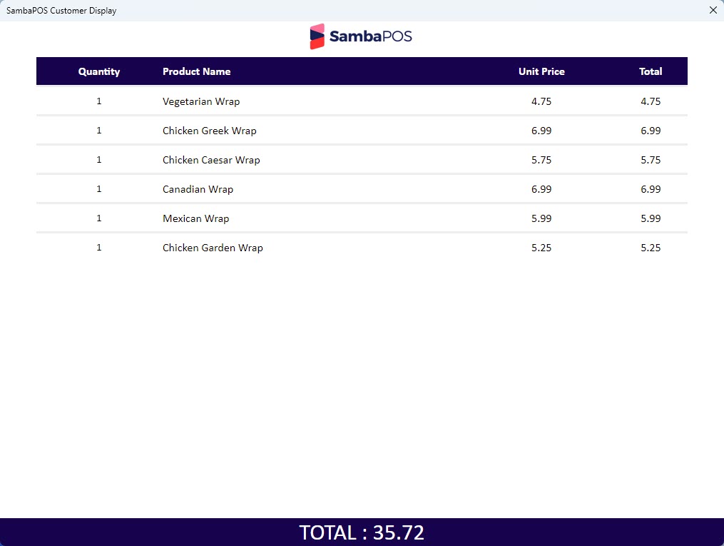 In order to use this Customer Screen Configuration you need to have SambaPOS 5.7.2 or above version installed on your computer from our website.