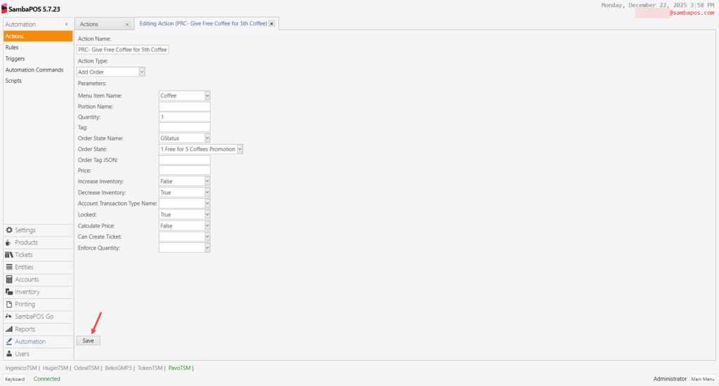 3.1. Adding PRC- Give Free Coffee for 5th Coffee Action