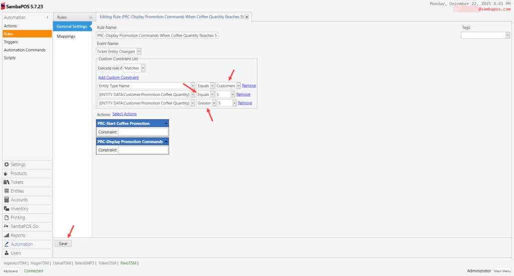 Rule Name: PRC-Display Promotion Commands When Coffee Quantity Reaches 5